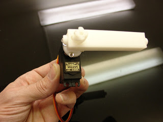 Befestigen Sie diese Schraube am Drehteller Ihres HK15298 oder eines ähnlichen Servos. Stellen Sie Ihr Servo mit der Arduino-Karte auf 0° ein. Unter Beibehaltung des Versatzes von 1 cm sollte „JawHinge“ im 90°-Winkel zum Servo montiert werden.
