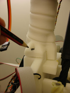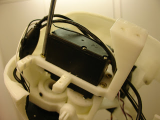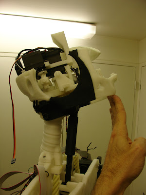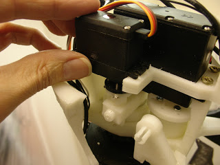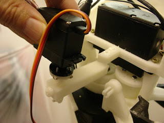 Befestigen Sie „ThroatPistonBase“ mit einer 8-mm-Schraube an „NeckHinge“ (oder drucken Sie eine von Hand aus).Jetzt sollte sich der gesamte Kopf auf und ab bewegen können, wenn sich das Servo von 0 auf 180 dreht. Machen Sie einen Test mit dem Arduino. Führen Sie diesen Test sorgfältig durch.