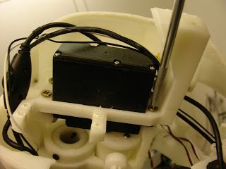 ACHTUNG: Das Backenservo kann nur von 0 auf 20° gedreht werden (glaube ich), bei mehr kann es zu Beschädigungen kommen. Bitte führen Sie zur Überprüfung Ihren eigenen Test durch. (Im Moment, in dem ich das schreibe, weiß ich nicht genau, wie viel meines Kosten könnte. Wenn ich es wieder einstecke, werde ich das korrigieren) Im „Neck“ können Sie die Kabel Ihrer Servos verlegen. Jetzt sollten Sie darauf eingestellt sein, den Kopf und den Kiefer durch Ihr Arduino zu bewegen. Überprüfen Sie auf die Pin-Verbindung, um diese Ihrem Roboter hinzuzufügen.