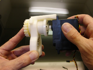 Verwenden Sie „GearHolder“ und stellen Sie „ServoGear“ darüber ein. Schrauben Sie das mit Ihrem HS-805BB-Servo gelieferte Stellrad an „ServoGear“.
